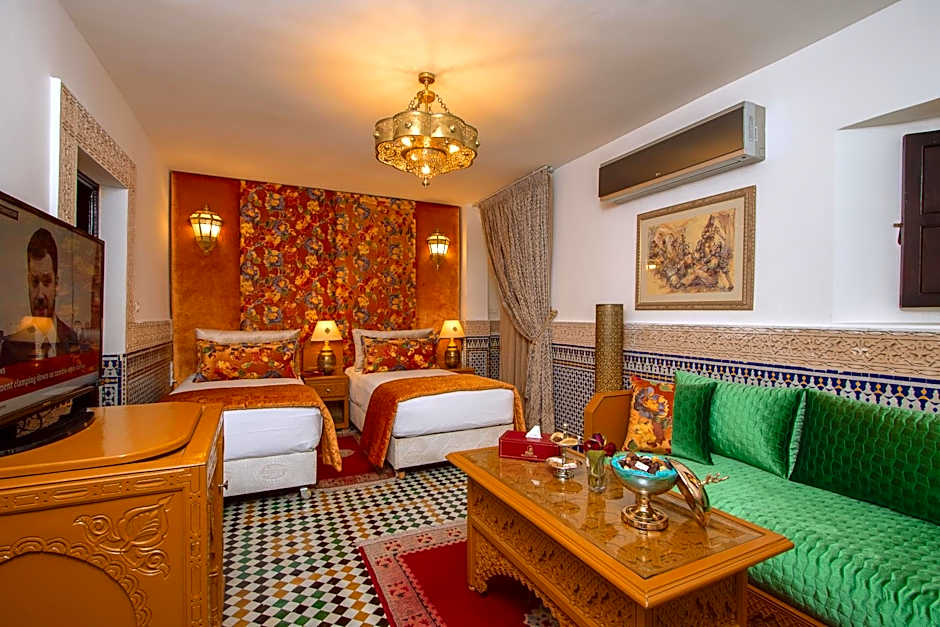 +1 (888) 389-8504Step into a world of Moroccan charm at , a splendid 4-star hotel located at 13 Rue Salaj, Batha in the enchanting city of Fès, just from the city center. With prices starting as low as $100, this oasis of tranquility offers travelers a taste of luxurious comfort blended with traditional elegance. Picture yourself wandering through picturesque alleyways, soaking in the vibrant culture of Fès, and then retreating to your soundproof room to unwind after a day of exploration.